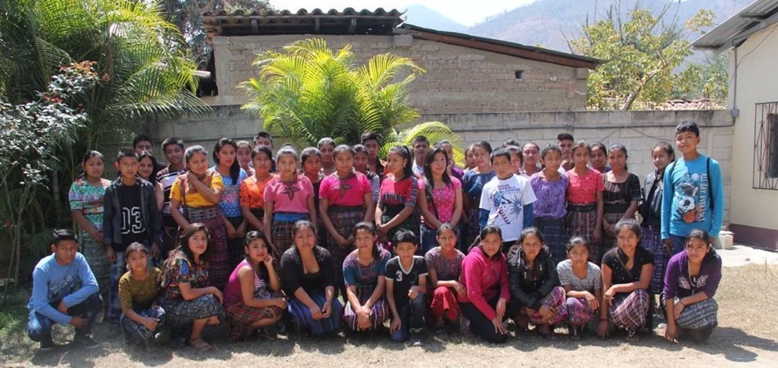 Sixty middle and high school scholarship students at ADIVIMA headquarters, Rabinal, Guatemala. All live in extreme poverty. Two-thirds of the students are girls who normally have little educational opportunity.