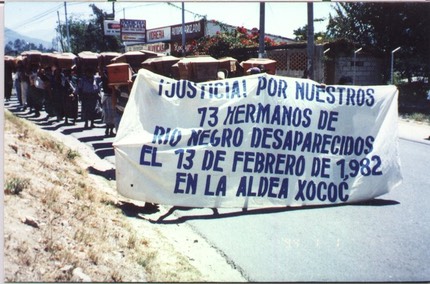 Un mes después de la matanza de los hombres in Xococ, 70 mujeres y 107 niños de Rio Negro fueron masacrados y dejados en una tumba clandestina en el cerro de Pacoxom.